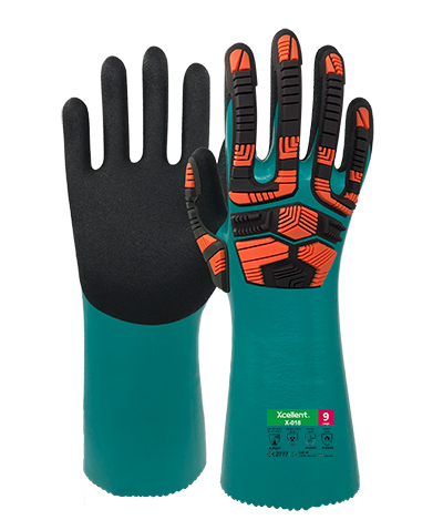 Die doppelte Nitrilbeschichtung bietet hohe Haltbarkeit und Durchstichfestigkeit sowie Wasser- und Ölabweisung. Die sandige Oberfläche sorgt für hervorragende Griffigkeit.
